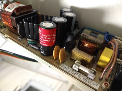 Una volta a casa provo a collegare il tutto e, nonostante lo sporco e l’ingiallimento, sembra funzionante. Ma gli inghippi non tardano ad arrivare: prima uno dei condensatori del filtro EMI di alimentazione cede con una fumata bianca, ma questo è un classico che si ripara facilmente. Poi la tragica scoperta: la RAM sembra perdere colpi. L’abbiamo scoperto scrivendo qualche semplice programma BASIC: superato un certo numero di righe il codice battuto si corrompeva o portava a risultati errati ed imprevisti. Ed infine, al lettore floppy mancava un pezzo, nella fattispecie la plastica che dovrebbe schiacciare il disco al rotore così da farlo ruotare.
