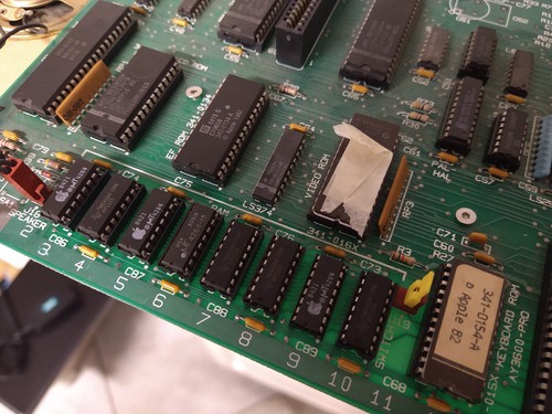 Con molta pazienza ho dissaldato tutti i chip per poterli verificare singolarmente utilizzando un tester fatto al volo con un Arduino. Il bilancio definitivo è stato di 4 chip danneggiati su 8. Ovviamente, al posto dei chip di RAM ho saldato degli zoccoli, così da poter confermare il corretto funzionamento delle memorie. Una decisione più che saggia, visto che uno dei chip nuovi che mi sono fatto spedire era leggermente sotto specifica e non passava il self-test.