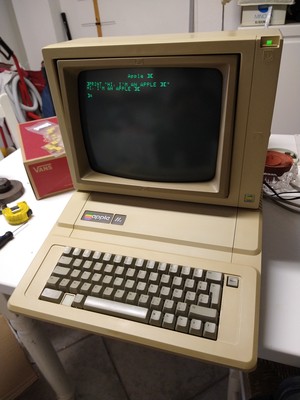 E in effetti quel computer era un Apple, ma al LUG sarebbe servito molto poco, visto che si trattava di un computer del 1982. Un Apple IIe piuttosto malconcio, per la precisione, in compagnia dell’iconico schermo a fosfori verdi ed uno dei lettore floppy da 5"½. Noi li dobbiamo buttare, bisogna liberare spazio per le classi, e a quanto pare non c’è più spazio neanche nel Museo Interattivo del Calcolo, che al tempo aveva sede lì. Accetto volentieri, mi sono rifiutato di lasciar andare al macero un pezzo di storia.